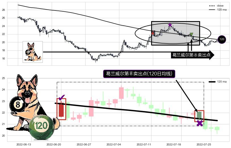 ⚀ 2022-07-21-日显现 葛兰威尔均线 120日均线 第⑧卖出点 下降趋势的中继信号,后市看跌,卖出信号