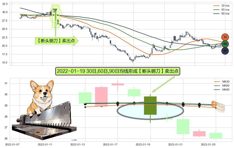 ⚀ 2022-01-19日显现 30日-60日-90日均线 【断头铡刀】卖出点 看空信号,后市看跌,卖出