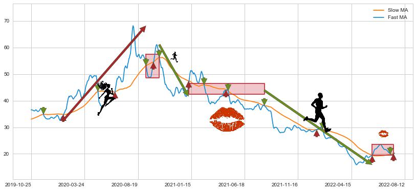 2021-08-10至2022-06-15 慢线与快线呈空头排列, 慢线与快线接触少,无缠绕