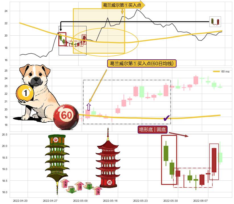 | 3 🅚:多方炮 ➕ 🎢:葛兰威尔第①买入点买入点信号形成后,猜想后续下跌趋势反转上涨趋势(均值回复) ☞ 看多信号 ⇥ 【均线】交织【🅚线】⇥ 综合量化分数: 53 | > |