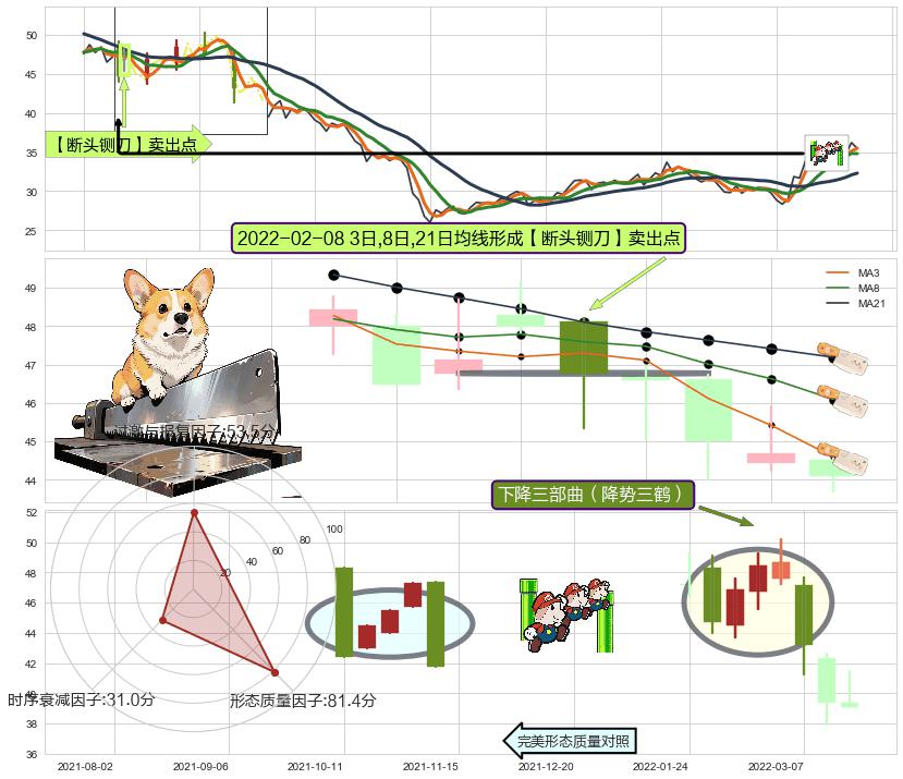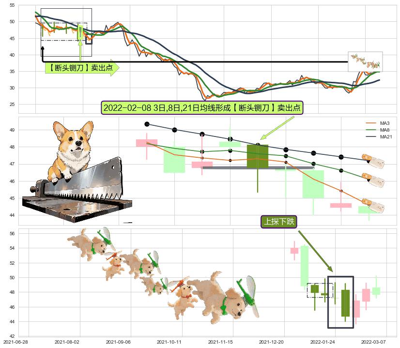 ➣ 2022-02-08日显现 3日-8日-21日均线 【断头铡刀】卖出点 看空信号,后市看跌,卖出