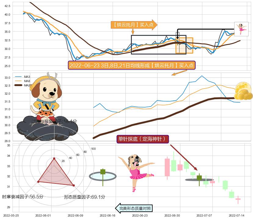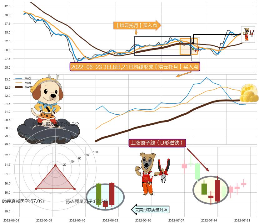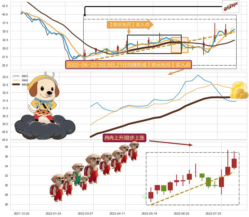 ➣ 2022-06-07日-2022-07-08日显现 3日-8日-21日均线 【烘云托月】买入点 看多信号,后市看涨,买入
