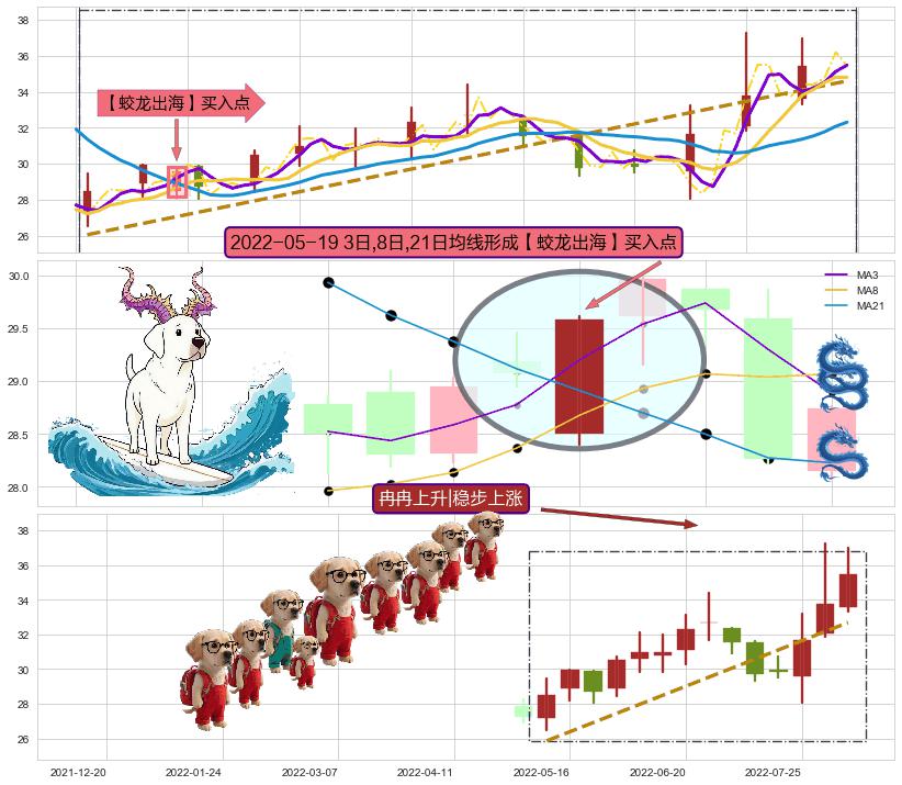 ➣ 2022-05-19日显现 3日-8日-21日均线 【蛟龙出海】买入点 看多信号,后市看涨,买入