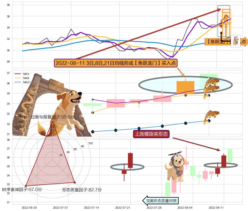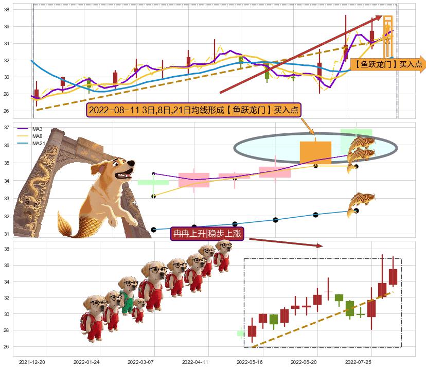 ➣ 2022-08-11日显现 3日-8日-21日均线 【鱼跃龙门】买入点 看多信号,后市看涨,买入