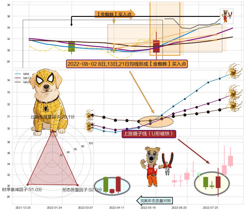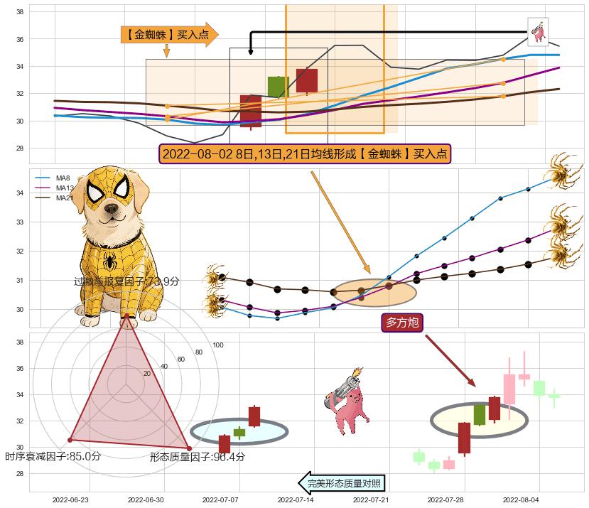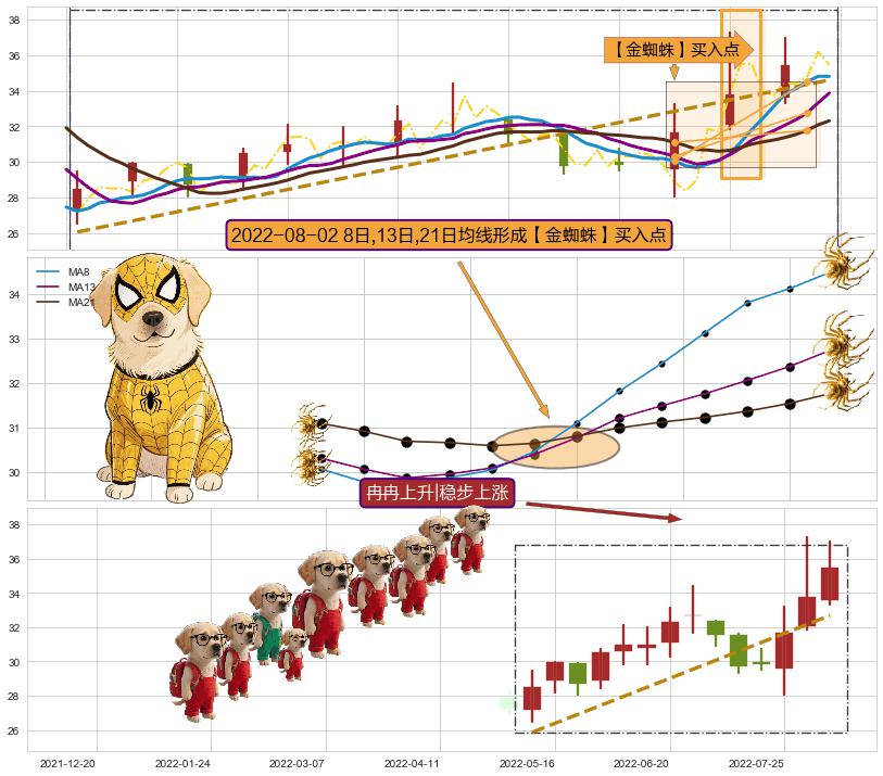 ➣ 2022-08-02日显现 8日-13日-21日均线 【金蜘蛛】买入点 看多信号,后市看涨,买入