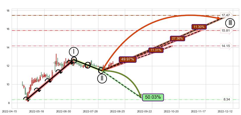 ➢ 循环浪继续向上【最低】位置(2022-10-13, 14.15),匹配聚类样本比例22.64%, 可能性概率11.31%