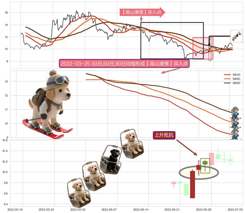 | 2 🅚:冉冉上升|稳步上涨 ➕ 🎢:【高山滑雪】买入点均线组合买入点信号形成后,猜想后续下行结束,持续反弹上涨(均值回复) ☞ 看多信号 ⇥ 【均线】交织【🅚线】⇥ 综合量化分数: 57 | > |