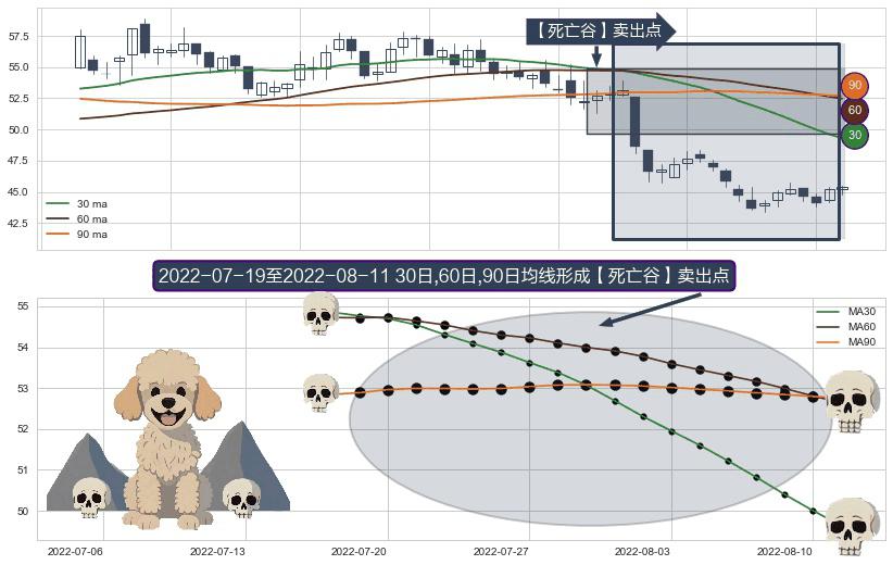 形态多维评估: ⚀ 2022-07-20-日至2022-08-11-日显现 30日-60日-90日均线 【死亡谷】卖出点 看空信号,后市看跌,卖出