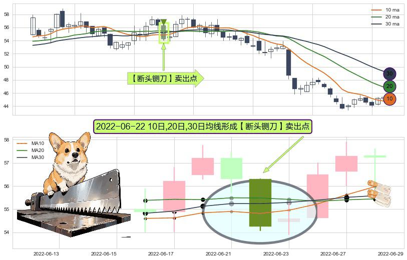 形态多维评估: ⚀ 2022-06-22日显现 10日-20日-30日均线 【断头铡刀】卖出点 看空信号,后市看跌,卖出
