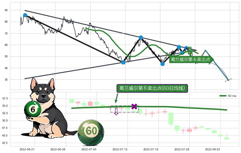 | 2 🅚:【死亡谷】卖出点 ➕ 📐:下降对称三角整理下行突破支撑位破位, 猜想持续下沉下跌,被突破的支撑位已变为阻力位 ☞ 看空信号 ⇥ 【均线】交织【图形】⇥ 综合量化分数: 47 | > |