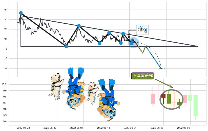 | 6 🅚:乌云盖顶 ➕ 📐:下降三角整理猜想突破点临近,临近关键支撑位,预期下沉突破下跌 ☞ 看空信号 ⇥ 【🅚线】交织【图形】⇥ 综合量化分数: 43 | > |