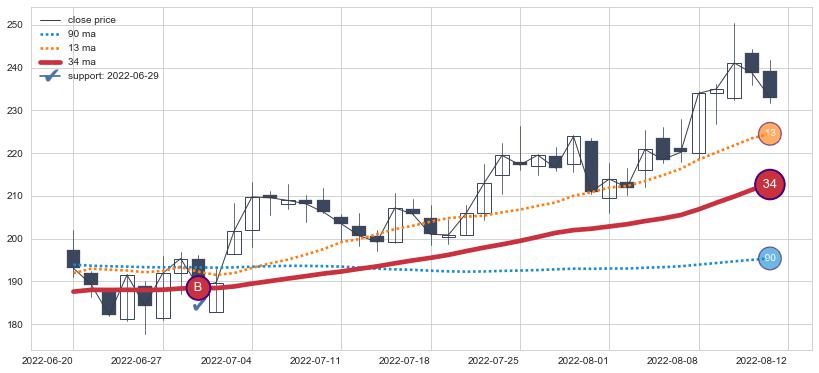 ⚀ 2022-07-04日显现 8日-13日-21日均线 【金蜘蛛】买入点 看多信号,后市看涨,买入