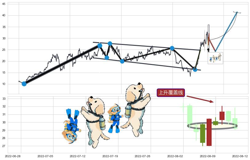 | 15 🅚:上升覆盖线 ➕ 🌊:波浪理论猜想下跌浪5已形成,猜想后续形成abc反弹上涨(均值回复) ☞ 看多信号 ⇥ 【🅚线】交织【图形】⇥ 综合量化分数: 54 | > |