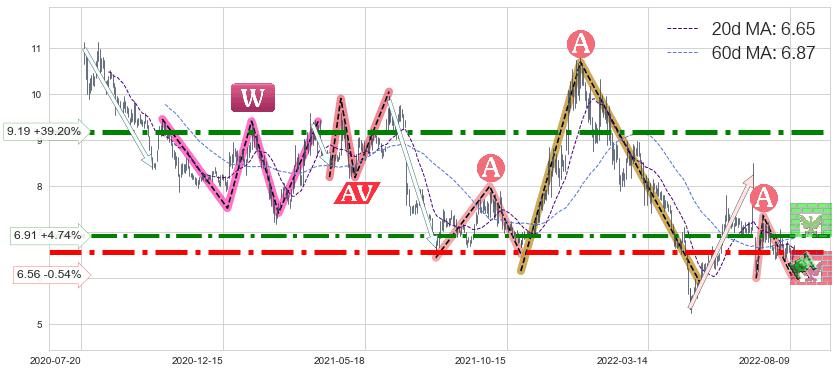 ♘ 阻力价格位6.91,可信任强度79.82%,距离最后交易2022-08-12形成的收盘价格6.60相差 +4.74%
