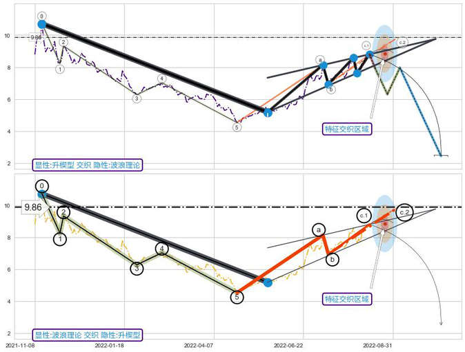 ➣ 波浪理论:临近C点,猜想达到c点后小反弹终止反转下跌 → 下跌 → 【拐点】临近 → 阶段均值回复结束后继续大周期趋势跟踪