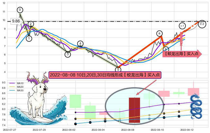 ➣ 🕰 价格走势在2022-08-08至2022-08-08期间形成【蛟龙出海】买入点,残存影响值:32.89