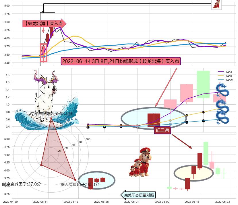 | 3 🅚:红三兵 ➕ 🎢:【鱼跃龙门】买入点均线组合买入点信号形成后,猜想后续充分蓄势之后,上涨突破关键阻力位 ☞ 看多信号 ⇥ 【均线】交织【🅚线】⇥ 综合量化分数: 52 | > |