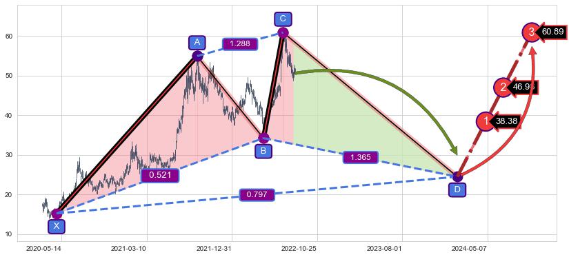 ➢ AI预测: 假定反转启动后, 第❷目标位置(2024-06-27, 46.98)