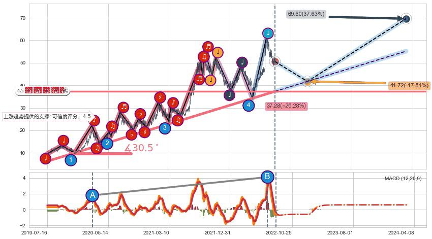 ➣ D点拟合预测价格24.47,距离最后交易收盘价格50.57相差 -51.62%