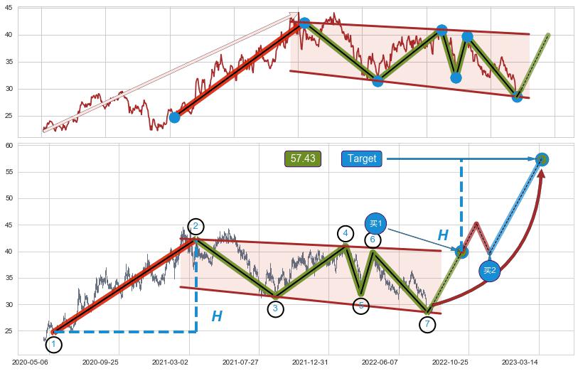 ➣ AI预测: 假定反转启动后, 第❶目标位置(2023-02-13, 34.14)