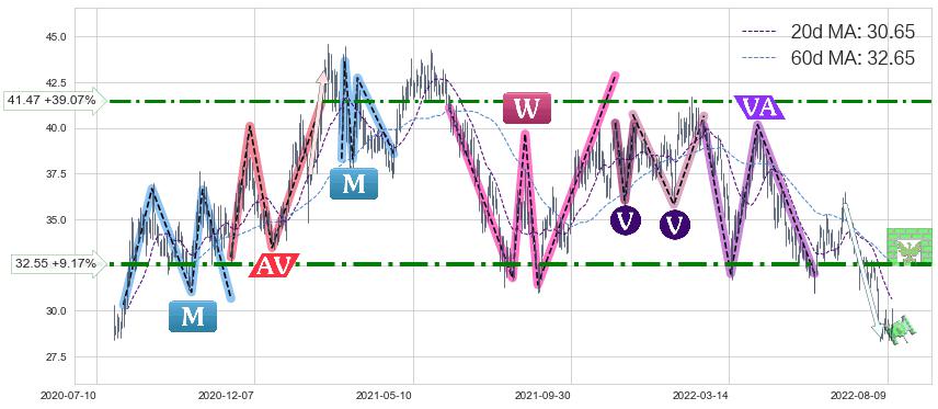♘ 阻力价格位32.55,可信任强度80.19%,距离最后交易2022-08-12形成的收盘价格29.82相差 +9.17%