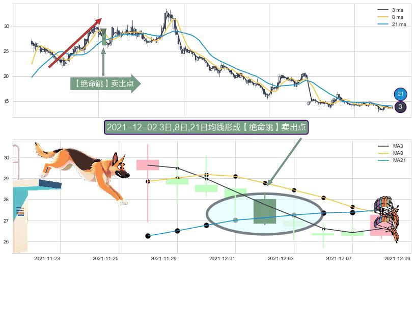 形态多维评估: ⚀ 2021-12-02日显现 3日-8日-21日均线 【绝命跳】卖出点 看空信号,后市看跌,卖出