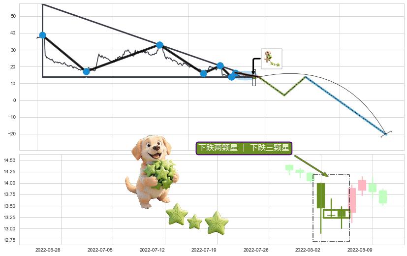 | 3 🅚:下降三部曲(降势三鹤) ➕ 📐:下降三角整理猜想突破点临近,临近关键支撑位,预期下沉突破下跌 ☞ 看空信号 ⇥ 【🅚线】交织【图形】⇥ 综合量化分数: 41 | > |
