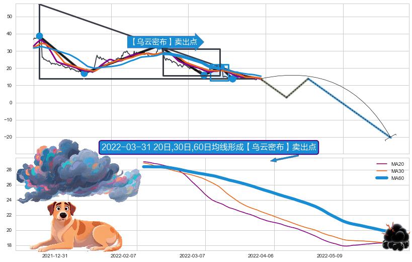 | 11 🅚:三只乌鸦 ➕ 🎢:【死亡谷】卖出点均线组合卖出点信号形成后,猜想后续破位下跌,沿着向下的尖头三角下跌 ☞ 看空信号 ⇥ 【均线】交织【🅚线】⇥ 综合量化分数: 42 | > |