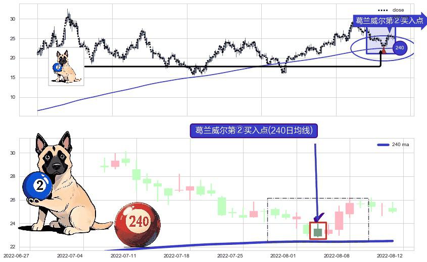 ⚀ 2022-08-03-日显现 葛兰威尔均线 240日均线 第②买入点 上升趋势的中继信号,后市看涨,买进信号