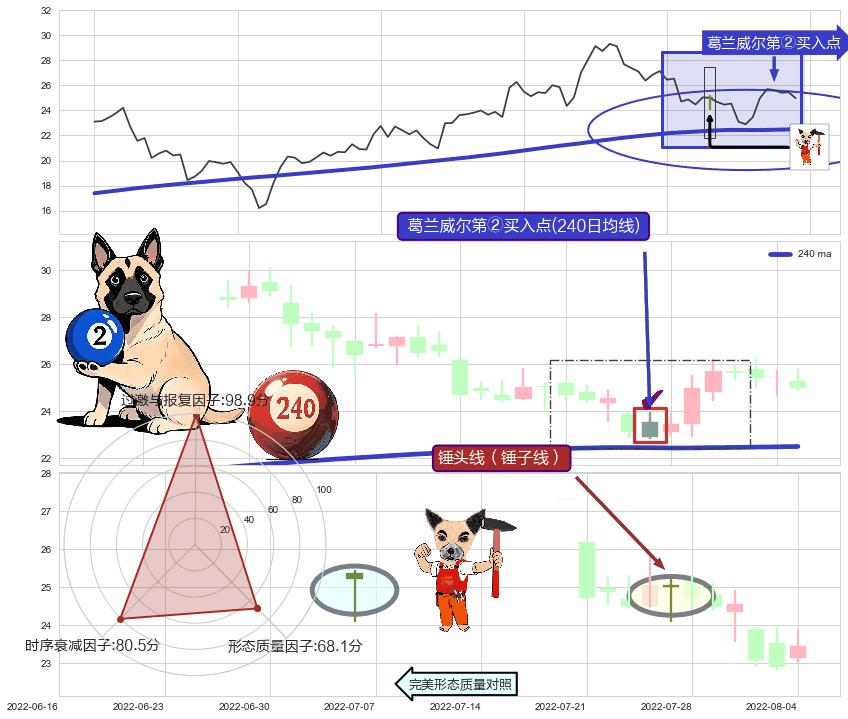 | 2 🅚:看涨(低位)倒锤头线 ➕ 🎢:葛兰威尔第②买入点买入点信号形成后,猜想后续回落结束,持续反弹上涨(趋势跟踪) ☞ 看多信号 ⇥ 【均线】交织【🅚线】⇥ 综合量化分数: 58 | > |