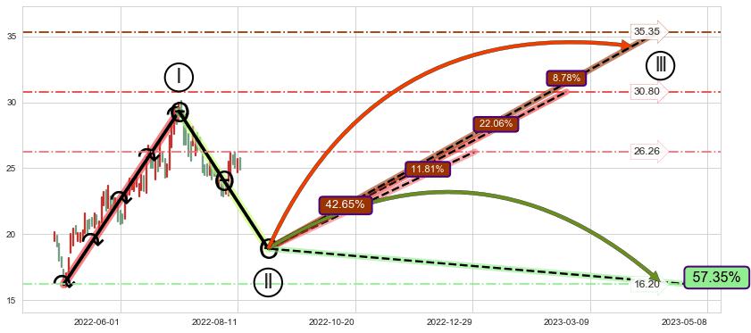 ➣ c.1: 当前c浪回调位置(2022-08-12, 24.98),仍然有回调空间
