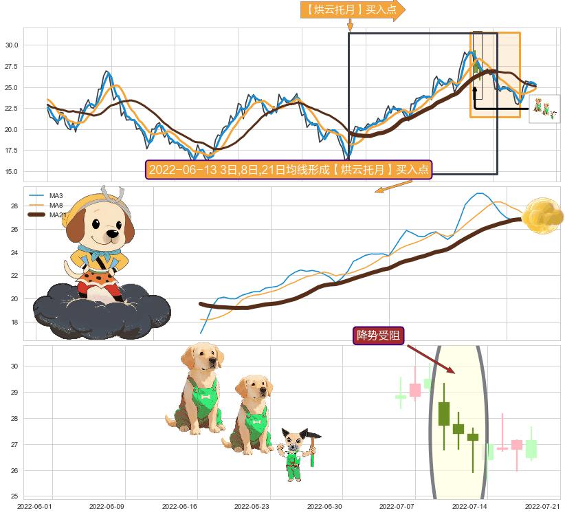 | 3 🅚:单针探底(定海神针) ➕ 🎢:【烘云托月】买入点均线组合买入点信号形成后,猜想后续上升持续,上涨加速(趋势跟踪) ☞ 看多信号 ⇥ 【均线】交织【🅚线】⇥ 综合量化分数: 53 | > |