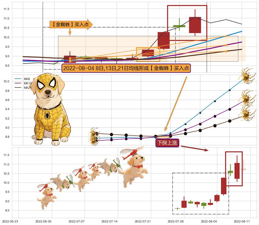 | 3 🅚:多方尖兵 ➕ 🎢:【金蜘蛛】买入点均线组合买入点信号形成后,猜想三条均线周期内的交易者都看好后市,持续上涨 ☞ 看多信号 ⇥ 【均线】交织【🅚线】⇥ 综合量化分数: 51 | > |