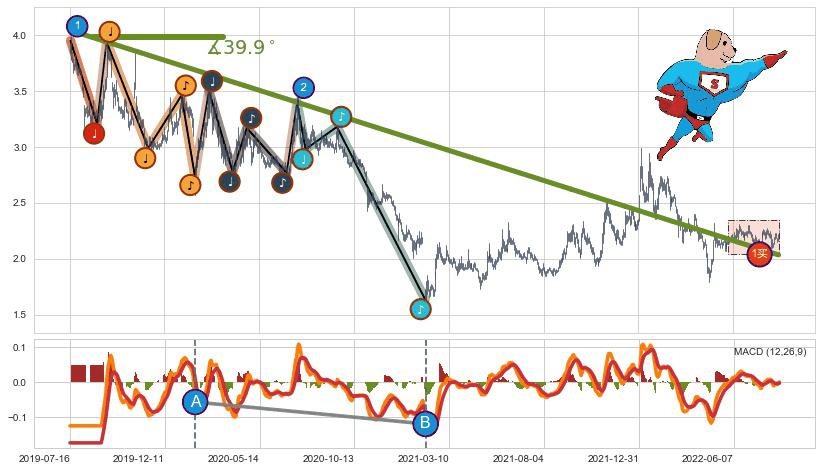 ➣ D点拟合预测价格3.219,距离最后交易收盘价格2.230相差 +44.35%