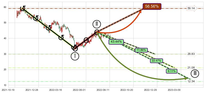 ➢ 循环浪继续向下【最高】位置(2022-12-23, 29.83),匹配聚类样本比例27.31%, 可能性概率11.86%