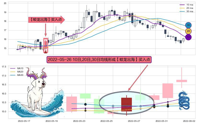⚀ 2022-05-26日显现 10日-20日-30日均线 【蛟龙出海】买入点 看多信号,后市看涨,买入