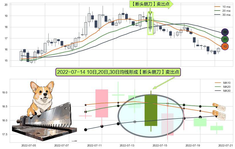 ⚀ 2022-07-14日显现 10日-20日-30日均线 【断头铡刀】卖出点 看空信号,后市看跌,卖出