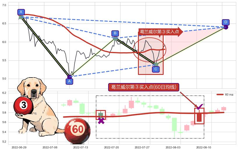 ➣ D点拟合预测价格6.40,距离最后交易收盘价格5.91相差 +8.32%