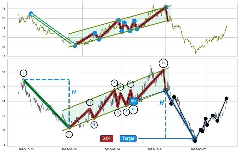 ➣ 最小中继整理跌幅→𝐇: 6.64 (𝐇旗杆的长度:旗杆起点→顶点)