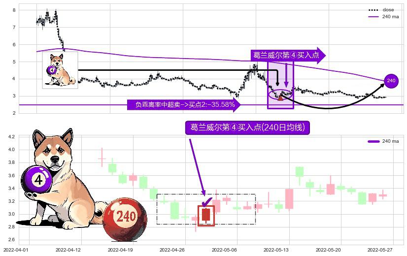 ⚀ 2022-04-28-日显现 葛兰威尔均线 240日均线 第④买入点 下降趋势均值回复的短线反弹信号,后市看涨,买进信号