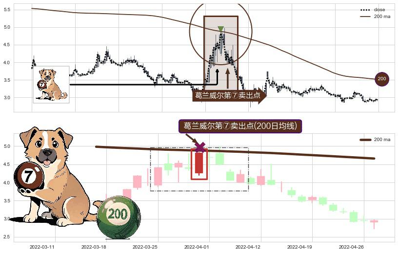 ⚀ 2022-03-31-日显现 葛兰威尔均线 200日均线 第⑦卖出点 下降趋势的中继信号,后市看跌,卖出信号