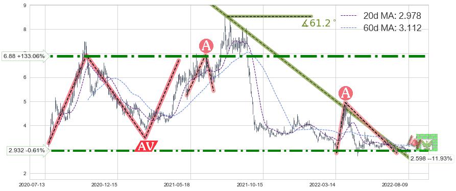 ♘ 阻力价格位2.932,可信任强度71.74%,距离最后交易2022-08-12形成的收盘价格2.950相差 -0.61%