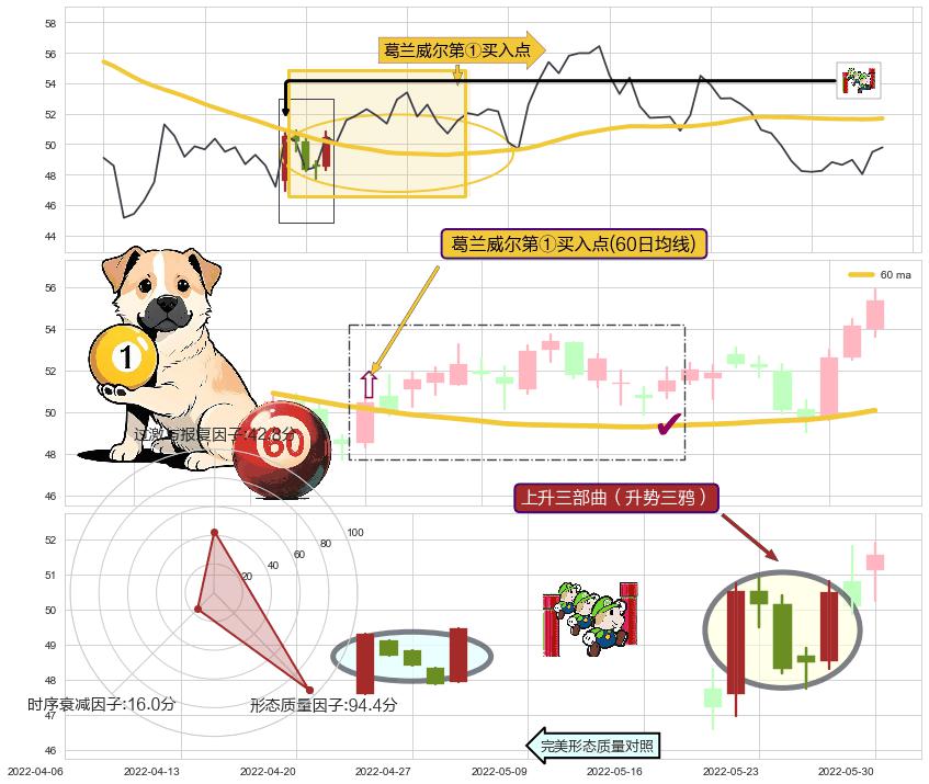 | 2 🅚:两红夹一黑 ➕ 🎢:葛兰威尔第①买入点买入点信号形成后,猜想后续下跌趋势反转上涨趋势(均值回复) ☞ 看多信号 ⇥ 【均线】交织【🅚线】⇥ 综合量化分数: 52 | > |