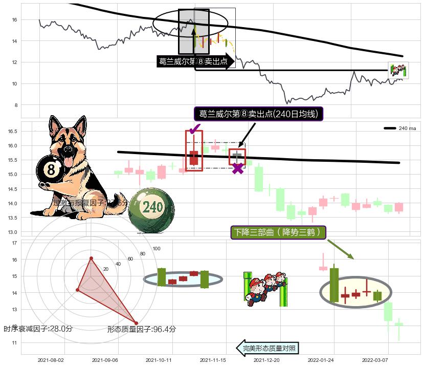 | 2 🅚:射击之星形态 ➕ 🎢:葛兰威尔第⑧卖出点卖出点信号形成后,猜想后续持续下行(趋势跟踪) ☞ 看空信号 ⇥ 【均线】交织【🅚线】⇥ 综合量化分数: 47 | > |