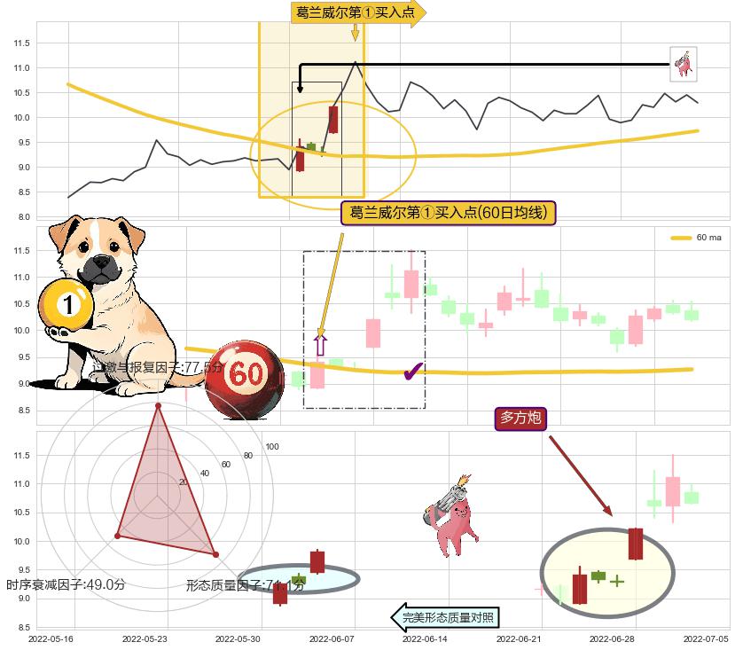 | 3 🅚:塔形底 | 圆底 ➕ 🎢:葛兰威尔第①买入点买入点信号形成后,猜想后续下跌趋势反转上涨趋势(均值回复) ☞ 看多信号 ⇥ 【均线】交织【🅚线】⇥ 综合量化分数: 51 | > |