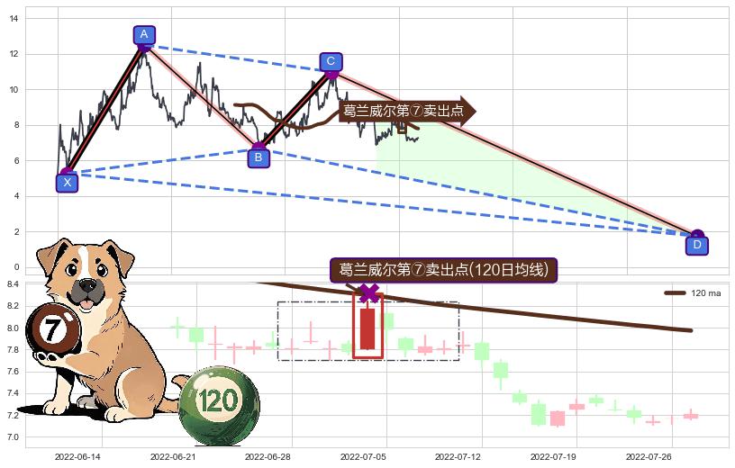 ➣ D点拟合预测价格1.7412,距离最后交易收盘价格7.27相差 -76.05%