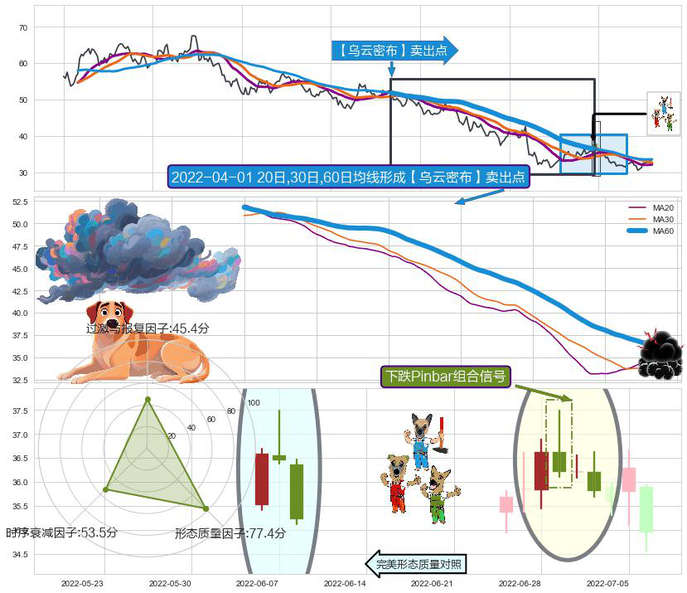 ➢ 下跌Pinbar组合信号 🔜 【乌云密布】卖出点乌云密布空头中继卖出点 综合量化分数:41.63 【偏空】