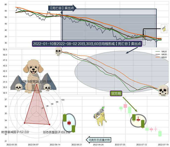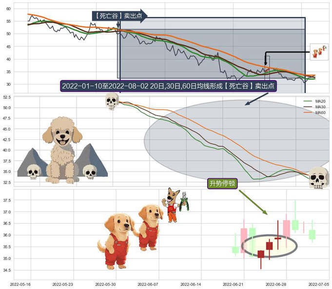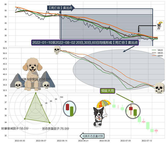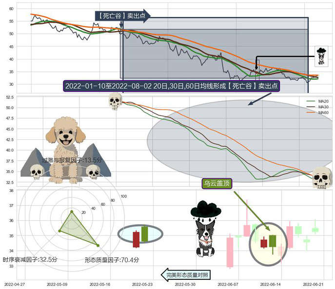 ➢ 升势停顿 🔜 【死亡谷】卖出点死亡谷均线交叉卖出点 综合量化分数:37.97 【偏空】
