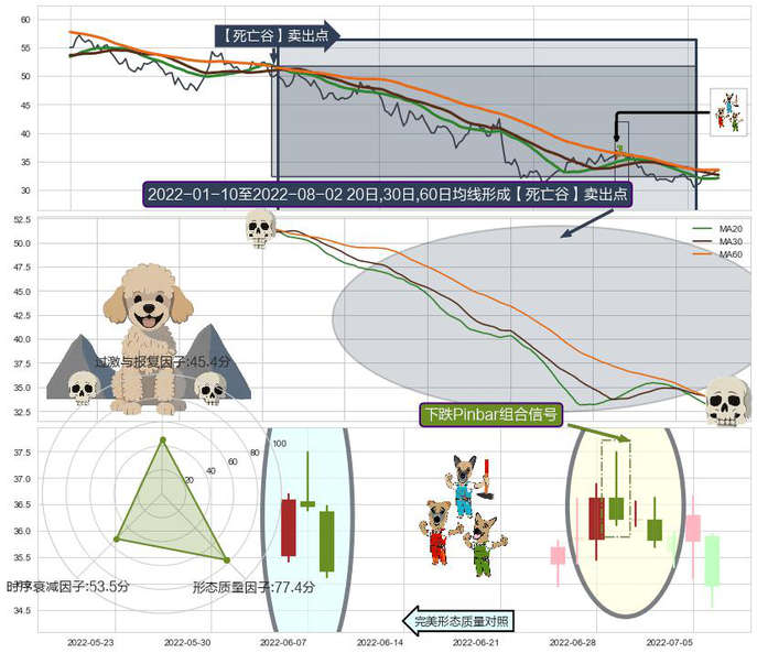 ➢ 下跌Pinbar组合信号 🔜 【死亡谷】卖出点死亡谷均线交叉卖出点 综合量化分数:37.92 【偏空】