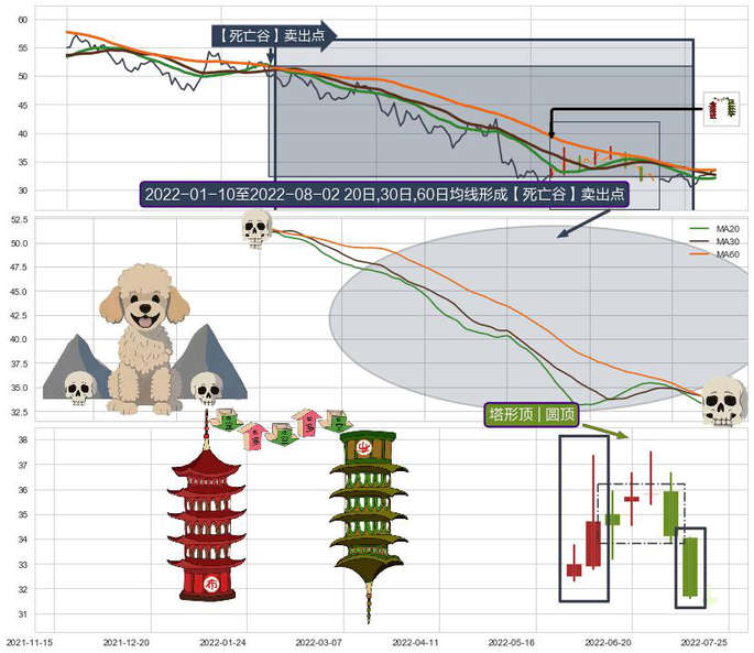 ➢ 塔形顶 | 圆顶 🔜 【死亡谷】卖出点死亡谷均线交叉卖出点 综合量化分数:39.71 【偏空】